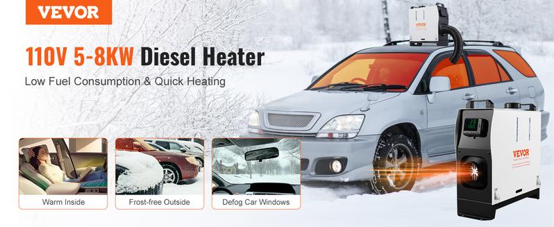 VEVOR 5-8KW Diesel Air Heater 110V Adapter and DC12V T-Shaped Plug External Wiring, All in One with Remote Control and LCD Screen, Fast Heating Low Noise, Portable Parking Diesel Heater for Truck Van RV Trailer Camper and Indoors
